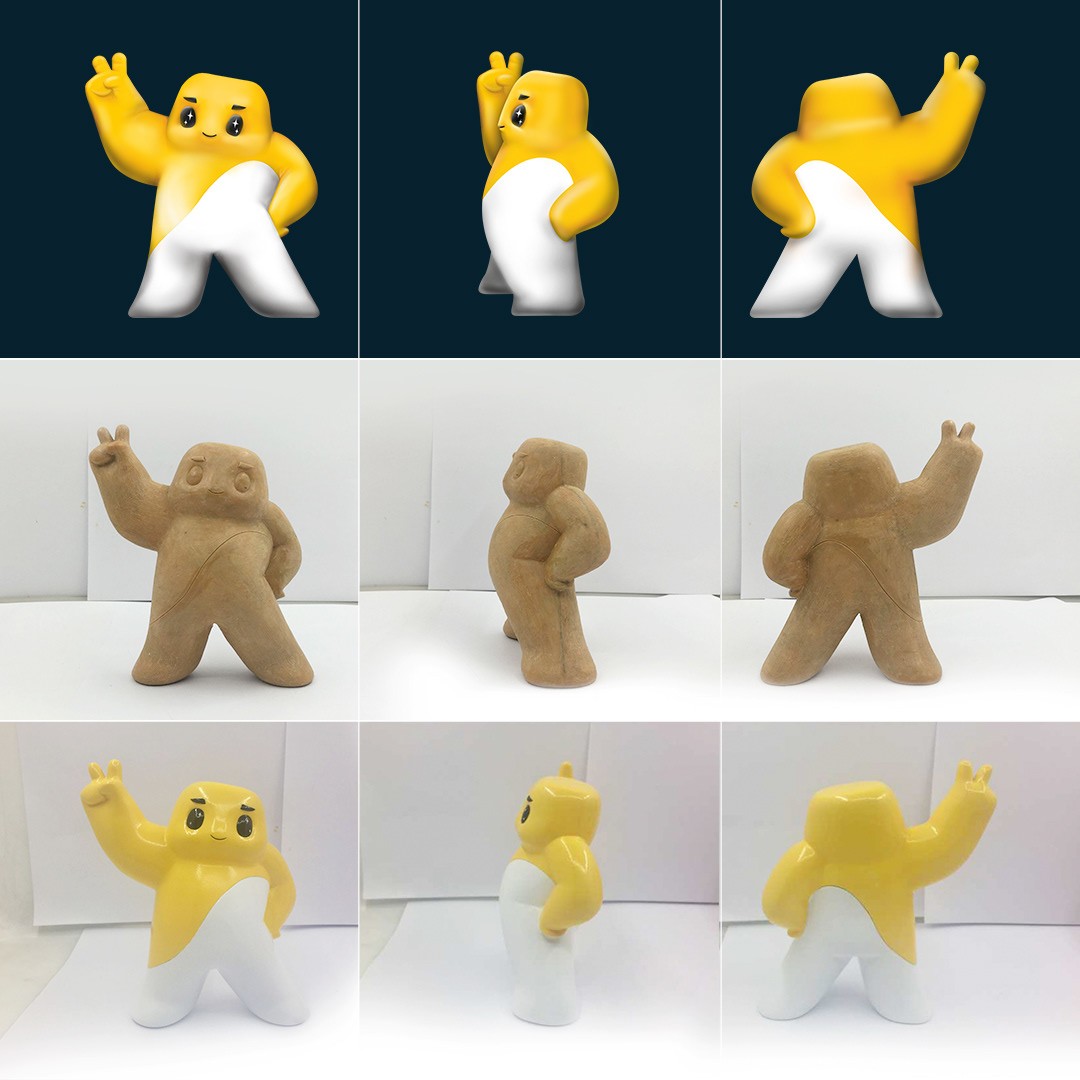 Originally, the mascot was not part of the plan. The brand only had a 2D logo, with no solution for translating it into a 3D world.